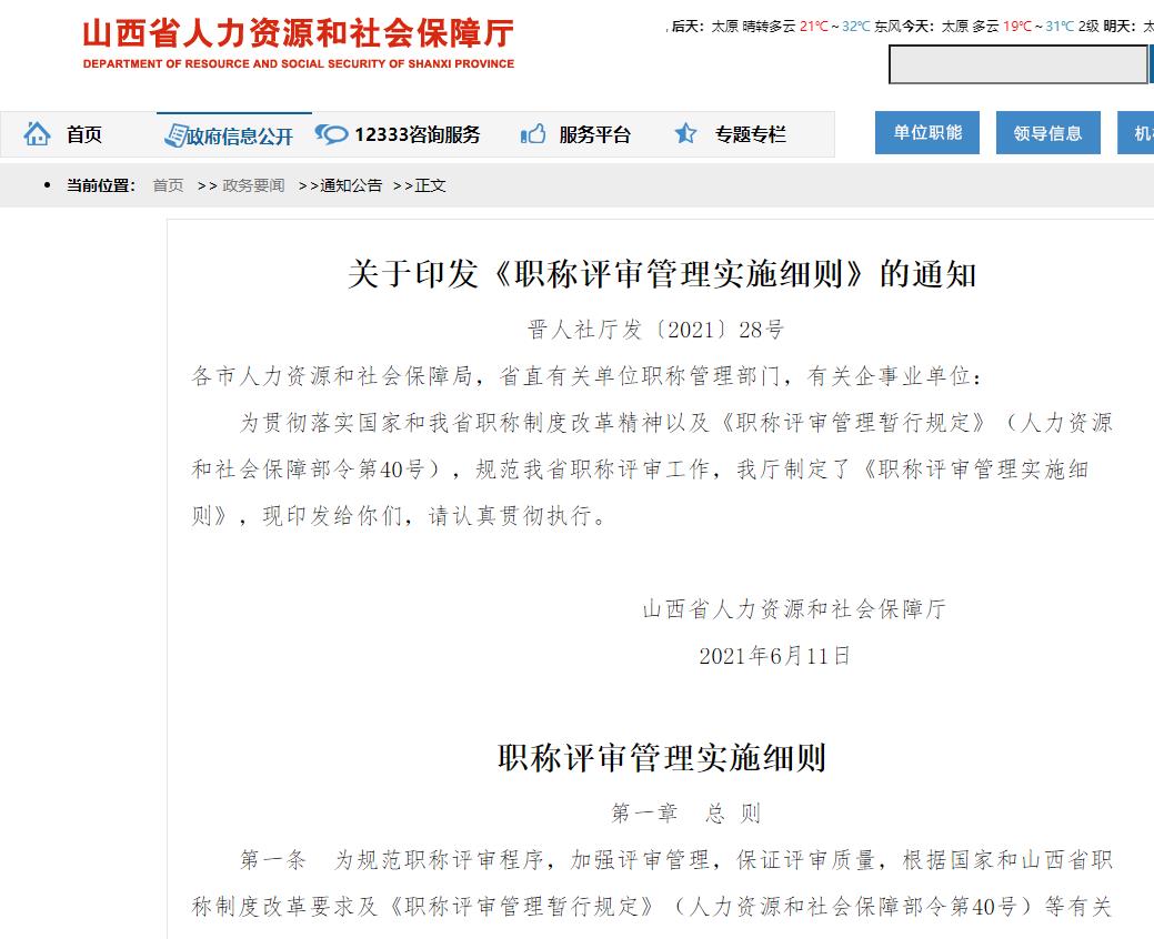 關(guān)于印發(fā)《職稱評審管理實(shí)施細(xì)則》的通知 晉人社廳發(fā)〔2021〕28號(hào)